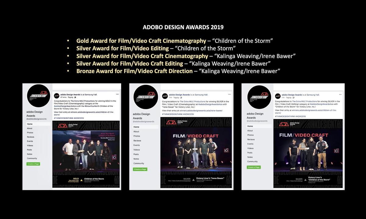 Adobo Design Awards 2019 - Gold Award for Cinematography, Silver Award for Editing